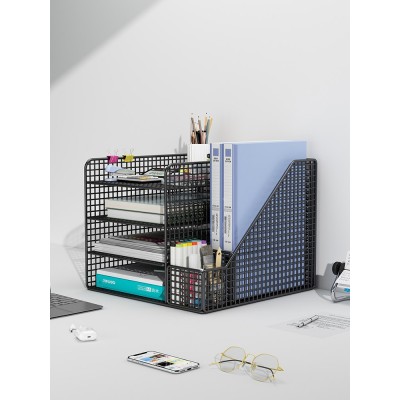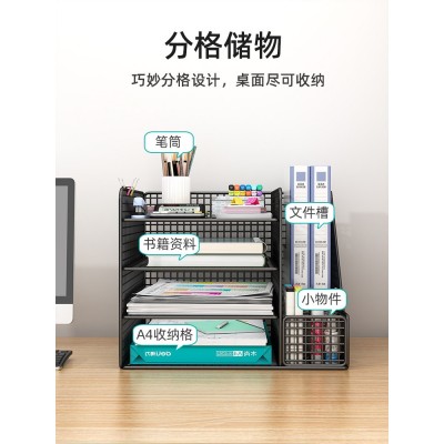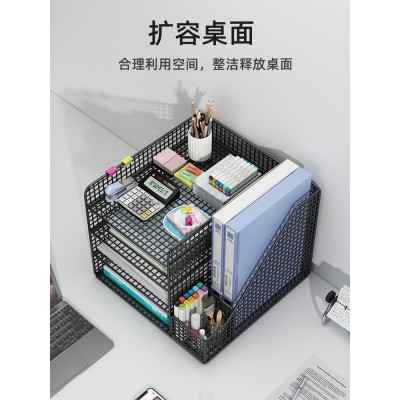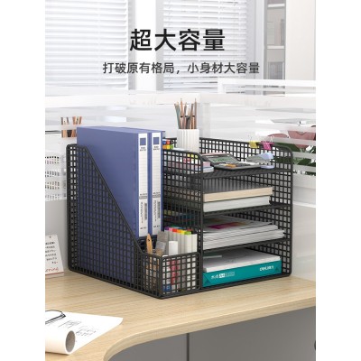 办公桌面置物架文件收纳架文件收纳盒办公用品大全多层文件架A4文件框文件夹资料档案整理架铁艺金属书立架子