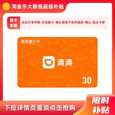 首页 > 充值卡 > 滴滴出行30元通用卡充值卡优惠券兑换码 嘀嘀快车券礼品卡代金卷