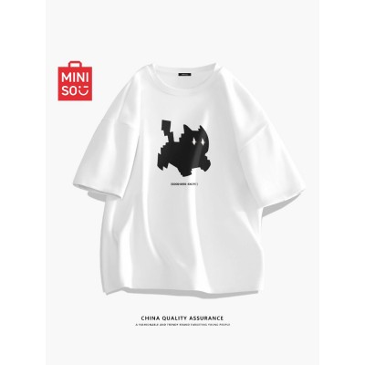 MINISO/名创优品男t恤短袖白色男款衣服青少年男生纯棉夏季半袖A