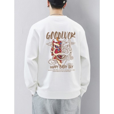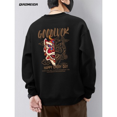 2025新款圆领卫衣男士国潮醒狮无帽上衣秋冬季春秋款舞狮港风潮牌